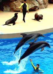 圖:香港海洋公園展示海豚表演
