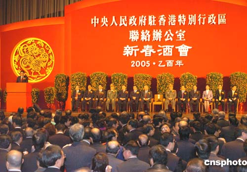 中央人民政府駐香港特別行政區(qū)聯(lián)絡(luò)辦公室22日晚在香港會展中心舉行2005(乙酉年)新春酒會﹐特首董建華與眾多嘉賓出席。作者:趙振清