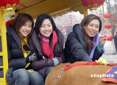 “二00四香港小姐赴豫親善采風(fēng)團(tuán)”二十三日抵達(dá)鄭州,在豫八天時(shí)間,應(yīng)屆“港姐”冠亞季軍徐子珊、朱慧敏、符思思,將沿河南省入境游主要黃金路線的鄭州、洛陽(yáng)、開(kāi)封等城市的精品景區(qū)采風(fēng)。