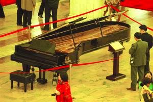 昨天,在人民大會堂中央大廳擺放的一架大鋼琴,吸引了很多人的圍觀,一些委員還利用會議間隙在此合影留念。鋼琴前的銅牌介紹,這就是鋼琴之王———世界上最大的鋼琴,它還是在周總理的建議下才被制造出來的。
