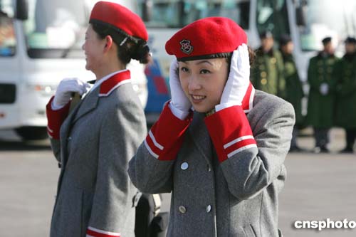 圖:天安門廣場上“美麗凍人”的禮儀小姐
