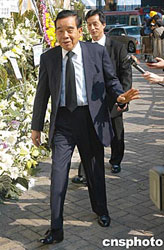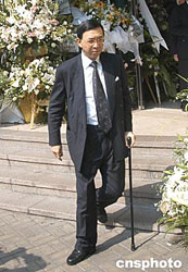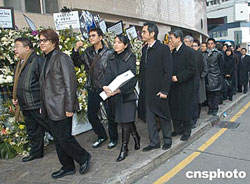 喪禮今早八時(shí)開(kāi)始,以佛教儀式進(jìn)行。靈堂內(nèi)外放滿(mǎn)各界祭送的花圈。