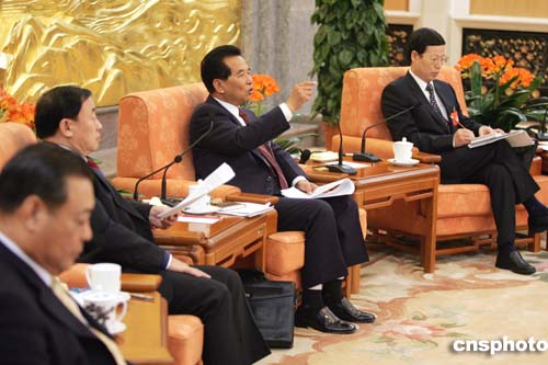 圖:吳官正與山東代表一起審議政府工作報(bào)告