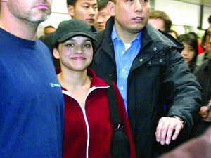 剛剛結(jié)束在漢城的個(gè)唱,諾拉·瓊斯及樂(lè)隊(duì)、工作人員一行20多人直接飛到北京。由于她一向低調(diào),故機(jī)場(chǎng)除了幾家媒體接機(jī)外,未見(jiàn)歌迷。在飛機(jī)落地半個(gè)多小時(shí)后,頭戴黑色棒球帽、身著紅色運(yùn)動(dòng)衣的諾拉·瓊斯在工作人員的包圍中走出了安檢口。等候多時(shí)的攝影記者們剛舉著機(jī)器沖上前,就被主辦方唐西文化請(qǐng)來(lái)的4名保衛(wèi)人員攔住。諾拉·瓊斯身邊的一男子立即把嬌小的她護(hù)在臂彎里,客氣地拒絕了記者的拍照。原本滿臉倦意的諾拉·瓊斯露出了歉意的笑容,在前呼后擁中直接上了等候在外的別克車上。