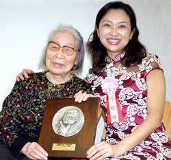 2月19日,可越和作品中的主人公——91歲高齡的八木谷老太太,一起出席了頒獎(jiǎng)典禮。