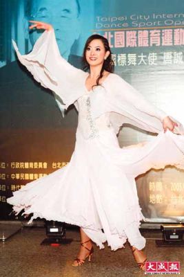 昨晚于臺(tái)師大分部舉行的“2005臺(tái)北國(guó)際標(biāo)準(zhǔn)舞大賽”,邀請(qǐng)中國(guó)、丹麥等舞林高手飆舞。劉真特地以一身雪白舞衣,擔(dān)任“國(guó)標(biāo)舞大使”唐誠(chéng)精采舞姿介紹人,她說(shuō):“唐誠(chéng)67歲才開(kāi)始學(xué)舞,我會(huì)有今天這成就,受唐誠(chéng)影響很深。”