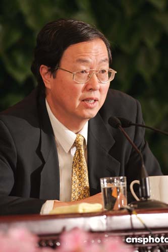 三月七日,十屆全國人大三次會議在北京人民大會堂舉行記者招待會,國家發(fā)展和改革委員會主任馬凱、中國人民銀行行長周小川、銀監(jiān)會主席劉明康、國土資源部副部長李元回答記者提問。圖為周小川在記者招待會上。作者:毛建軍