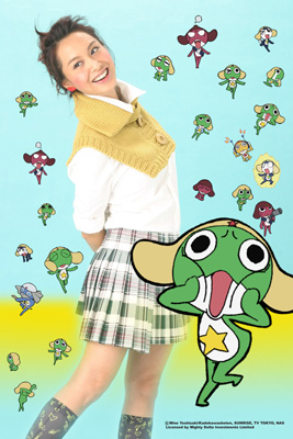 中新網3月9日電 據香港《大公報》報道,朱茵被片商“欽點”演繹《Keroro軍曹》中文版主題曲,感到興奮莫名,更直言與“Keroro軍曹”十分有緣。她開心的說:“從未試過唱兒歌,也想不到會得到別人的賞識。我覺得與Keroro軍曹很有緣,因為去年我到日本工作時,在商店及電視看到這只青蛙,第一個反應就覺得它樣子可愛得來帶點兒『賤』,立即留下深刻印象。想不到這次可以為它的卡通演繹主題曲,確實十分開心!惫室唤浹,即決定獻出這個第一次。