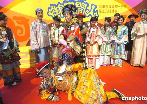 正在香港黃金時段播出的電視劇《御用閑人》劇中演員身著戲裝19日來到尖沙咀鬧市區(qū)演戲﹐為該劇播出進行宣傳造勢。作者:趙振清