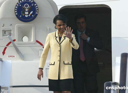 圖:美國國務(wù)卿賴斯抵達北京