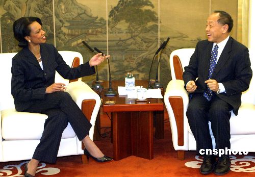 同日,中國國務(wù)委員唐家璇會見了賴斯。唐家璇說,處理好中美兩國關(guān)系需要增強相互理解和互信。中方愿與美方共同努力,牢牢把握合作這條主線,妥善處理分歧,共同維護(hù)和促進(jìn)亞太地區(qū)乃至世界的和平、穩(wěn)定和繁榮。