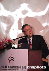 二00五北京國際鼻顱底外科論壇三月二十六日在北京開幕,香港大學(xué)醫(yī)學(xué)院教授、耳鼻咽喉外科專家韋林為與會者做專題演講。作者:任晨鳴