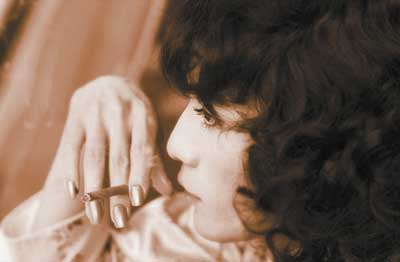 幾乎與話劇《琥珀》上映的同時,劉燁的寫真集也應景上市,其中一張三分之一側面的照片在網(wǎng)上引起了軒然大波。照片上的劉燁戴著長長的假睫毛,鬈鬈的假發(fā),指甲涂了蔻丹的手指夾著細煙,湊在光潤的唇邊,一個風塵味十足的嫵媚女人。如果不說,沒有人能看出那是雙料影帝劉燁。特別是那濃密睫毛的大眼睛,薄嘴唇倒很像歌壇天后王菲。