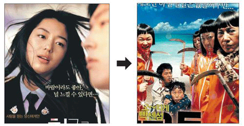 文章同時指出,韓國電影觀眾階層的擴(kuò)大,也對韓國電影面貌的改變起到了重要作用。隨著電影觀眾層從原來的20歲年齡段擴(kuò)大至40歲以上年齡層以及10多歲年齡層,成人(18歲以上)影片迅速減少,取而代之的是家庭影片。這也是使韓國電影趨于多樣化的主要原因之一。