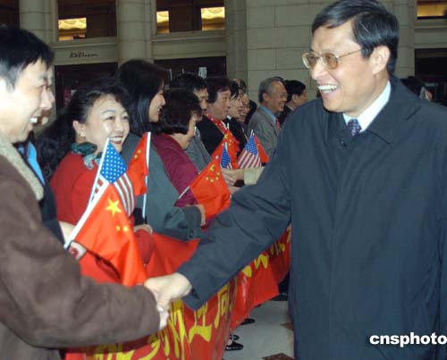 中國新任駐美大使周文重當(dāng)?shù)貢r間四月三日中午抵達(dá)美國首都華盛頓履新,受到當(dāng)?shù)厝A人僑學(xué)界代表的熱烈歡迎。