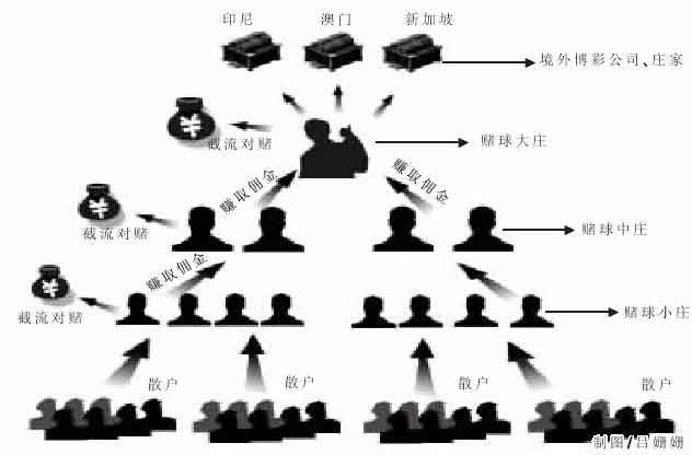 散戶投注給小莊,小莊上面有稍大一點(diǎn)的莊,這樣層層遞進(jìn),最后匯集到少數(shù)大莊。