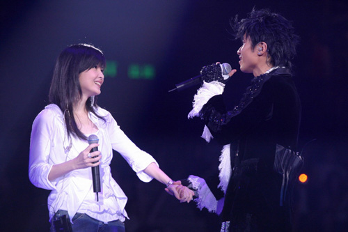 中新網(wǎng)4月8日電 據(jù)香港《大公報(bào)》報(bào)道,古巨基演唱會前晚于紅館揭幕,當(dāng)晚最難得就是“基仔”請來好友周慧敏(vivain)助陣。vivain最初只是座上客,沒想到“基仔”借助觀眾的威力把她拉出場,二人合唱一曲《流言》,贏盡觀眾掌聲。