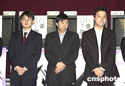 第十八屆富士通杯世界圍棋錦標(biāo)賽四月十一日在日本棋院戰(zhàn)罷第二輪。三名中國棋手全線告捷,戰(zhàn)勝各自對(duì)手進(jìn)入八強(qiáng)。其中古力七段(圖右)中盤戰(zhàn)勝韓國棋手李昌鎬九段;俞斌九段(圖中)以三目半戰(zhàn)勝中國臺(tái)北周俊勛九段;王檄五段(圖左)中盤勝日本羽根直樹九段。圖為三名獲勝的中國棋手賽后與現(xiàn)場觀眾見面,并進(jìn)行下一輪對(duì)陣位置的抽選。作者:王健