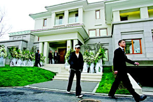 陳逸飛的靈堂就設(shè)置在他剛裝修完工的別墅里。陳逸飛的別墅是一幢歐美風(fēng)格的建筑。乳黃色的墻面和紅色的瓦,顯得雍容華貴。他在2002年花費(fèi)了800萬(wàn)左右買下了這所住宅,去年年底裝修完畢。