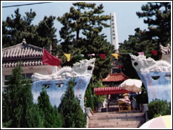 劉公島的主峰叫旗頂山,海拔153米,海島四周巖石裸露,島上峰巒疊翠,景色優(yōu)美,空氣清新,素有"海上桃源"之稱。"千里絕塵埃,此間即洞天"是劉公島最好的寫照。沿環(huán)山路繞島而行,不僅可以參觀各景點,還可飽覽海天一色的美麗風(fēng)光。