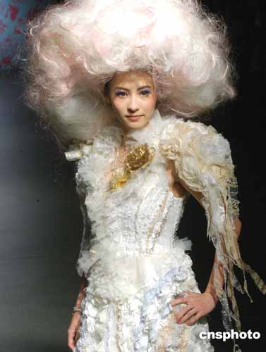 歌影紅星張柏芝4月16日在香港為著名時(shí)裝設(shè)計(jì)師尹泰尉時(shí)裝演譯作品。作者:鄧慶樂