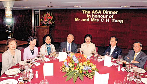 昨日的晚宴筵開二十五席,當(dāng)中被安排坐在首席的十六人,除董建華夫婦、曾蔭權(quán)夫婦外,尚包括房屋規(guī)劃及地政局局長孫明揚(yáng)、政制事務(wù)局局長林瑞麟、公務(wù)員事務(wù)局局長王永平、新聞處處長蔡瑩璧、行政長官私人秘書葉文輝,以及前政務(wù)司司長陳方安生夫婦等。而一些前政府高官如吳榮奎、蕭烱柱、黃星華、藍(lán)鴻震、余黎青萍、霍羅兆貞等亦有出席。