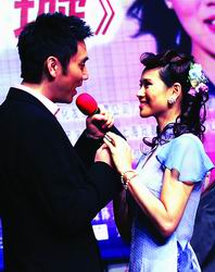 中新網(wǎng)4月20日電 昨天,上海話劇中心五樓排練廳,大型多媒體音樂劇《周璇》正在排周璇第一次代替王人美作為主演上臺的戲。主演伊能靜在現(xiàn)場非;钴S,鬼臉、小動作不斷。別以為她很輕松,其實(shí),她評價這次演出比她這些年來的任何表演都難,連和男主角林依輪的感情戲,她都難以攻克,“我們的雙眼不能實(shí)質(zhì)性對視!”