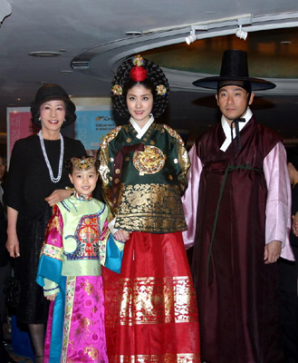 對于當(dāng)晚一身的皇后打扮,Kelly坦言好滿意。她表示,當(dāng)初未梳尚宮發(fā)型時,亦好擔(dān)心,因為她怕梳起這個發(fā)型后,會很老相,不太好看,首次梳這個發(fā)型,沒想到有有出人意表的效果。當(dāng)晚的發(fā)型師,便是《大長今》一劇的發(fā)型師。而皇后娘娘的服飾,是三四層布制成,內(nèi)里還有一些底布,Kelly最初穿得很費勁,還把服飾穿錯,幸得韓國的工作人員糾正。而頭上的尚宮發(fā)型,Kelly坦言十分重,足有十幾二十磅,不過她覺得自己梳這個發(fā)型,看來很有型,亦好有氣勢,令她好滿意。