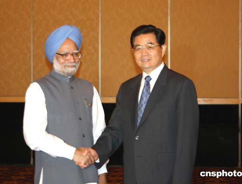 圖:中國(guó)國(guó)家主席胡錦濤會(huì)見(jiàn)印度總理辛格