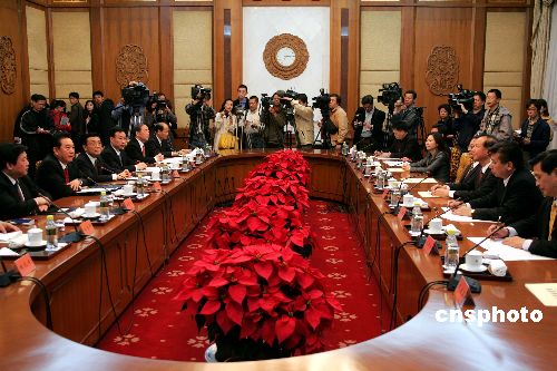 中共中央臺(tái)灣工作辦公室主任陳云林會(huì)見(jiàn)親民黨秘書(shū)長(zhǎng)秦金生。作者:毛建軍