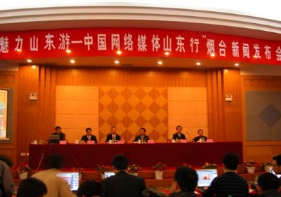 25日,“魅力山東游——中國網(wǎng)絡媒體山東行”采訪團一行深入煙臺蓬萊景區(qū)、南山景區(qū)采訪。當天下午,在新聞發(fā)布會上,煙臺市旅游局局長郝鳳利向網(wǎng)絡媒體記者介紹了煙臺旅游概況。