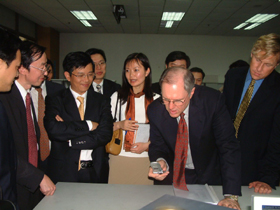 長虹公司董事長趙勇及其他領導陪同客人們參觀了長虹國家級技術中心有關實驗室,來賓們對長虹新近研發(fā)的產(chǎn)品產(chǎn)生濃厚的興趣,一次又一次地停下來觀看、詢問和試操作。