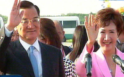 中新江蘇新聞網(wǎng)4月26日電(記者陳光明)中國國民黨主席連戰(zhàn)一行70多人今天下午16時(shí)40分乘飛機(jī)抵達(dá)南京,中共中央臺灣事務(wù)辦公室主任陳云林、副主任李炳才、中共江蘇省委副書記任彥申、江蘇省臺辦主任陳堯等官員以及臺商代表三百多人到機(jī)場迎接,并打出“熱烈歡迎中國民黨大陸訪問團(tuán)”。