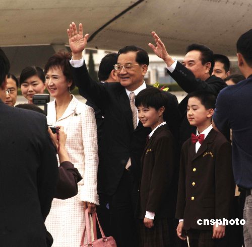 中共中央臺辦主任陳云林、中共北京市委副書記龍新民、在京臺商代表和北京各界代表列隊在停機坪熱烈歡迎連戰(zhàn)一行。
