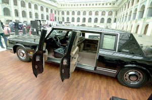 車展組織者表示,觀眾不僅可以觀看、觸摸這些車,還可以購買,任何富翁都可乘坐蘇俄前總統(tǒng)曾經(jīng)坐過的汽車。2004年,這輛汽車由莫斯科汽車商通過特殊競標(biāo)從克里姆林宮特種車庫中采購而來。
