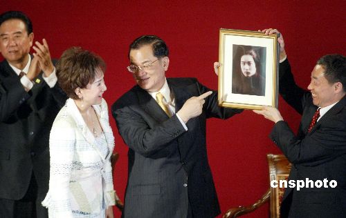 四月二十九日,中國國民黨主席連戰(zhàn)在北京大學(xué)發(fā)表演講,并獲贈具有特殊意義的北京大學(xué)紀(jì)念品。作者:廖文靜
