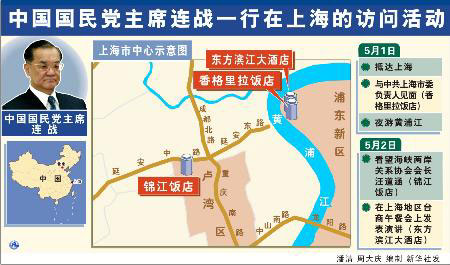 5月1日抵滬后,連戰(zhàn)將與中共上海市委負(fù)責(zé)人見面,當(dāng)晚夜游黃浦江。