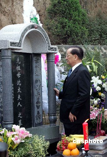 一日上午九時三十分許,陽光普照草木青蔥的墓園,連戰(zhàn)先生凝視祖母墳塋,深深三叩首;這三叩首,聊以慰藉他六十余年來對獨(dú)處西安的祖母的思念、掛懷。