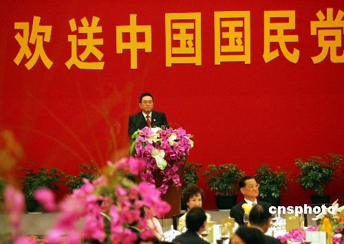 五月二日晚,歡送中國國民黨大陸訪問團宴會在上海舉行。中臺辦主任陳云林說,國民黨大陸訪問團八天揭開兩黨關(guān)系新篇章。作者:潘索菲