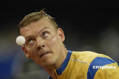 五月四日,第四十八屆世界乒乓球錦標賽繼續(xù)在上海體育館進行,在男單八強的爭奪戰(zhàn)中瑞典老將卡爾松雄風(fēng)依舊,殺入八強。作者:盛佳鵬