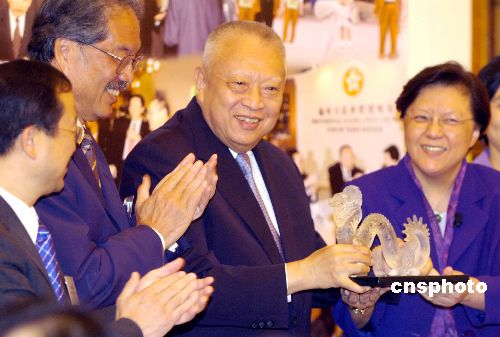 5月6日,香港立法會議員在立法會大樓設(shè)午宴,歡送前行政長官董建華,立法會主席范徐麗泰送了一條水晶龍給董建華。作者:洪少葵