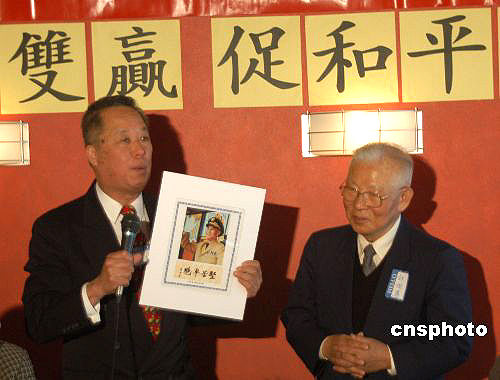 當(dāng)?shù)貢r間五月七日,華盛頓“榮光會”會長李昌緒(左)向臺灣“新同盟會”會長許歷農(nóng)(右)贈送照片。許歷農(nóng)曾經(jīng)擔(dān)任國民黨軍隊高級將領(lǐng),幾年前因不滿李登輝而退出國民黨的許歷農(nóng)最近又回到國民黨。作者:余東暉