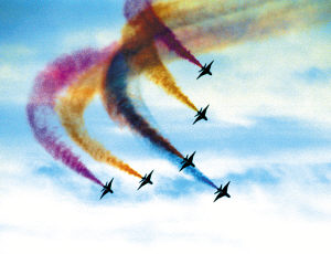 赤橙黃綠青藍(lán)紫,誰持彩練當(dāng)空舞?新型表演機(jī)為在藍(lán)天織就更美的彩練,還專門加裝了拉煙控制盒。此前,拉煙系統(tǒng)都是經(jīng)過改裝而成的。說起拉煙技術(shù),在20世紀(jì)80年代初期,僅有美國(guó)和蘇聯(lián)少數(shù)國(guó)家具備,但它們實(shí)行技術(shù)封鎖。為了打破這種局面,表演隊(duì)經(jīng)過上千次試驗(yàn),先后攻克白煙、彩煙難題,終于達(dá)到世界先進(jìn)水平。