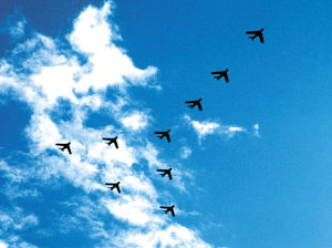 面對(duì)筆者的提問,李隊(duì)長(zhǎng)說,由于飛機(jī)在一些方面的改進(jìn),要使新機(jī)達(dá)到當(dāng)前6機(jī)編隊(duì)水平,飛行員需要進(jìn)行一段時(shí)間的恢復(fù)性訓(xùn)練。至于表演科目,他表示,因?yàn)槭褂玫氖浅羲亠w機(jī),在表演動(dòng)作上就要受一些限制。比如速度快轉(zhuǎn)彎半徑就大,在天氣好的情況下,觀眾能看到精彩表演,天氣不好視覺效果就差。另外還有一些動(dòng)作雖屬高難,但觀賞性不強(qiáng)。對(duì)這些他們將在原有基礎(chǔ)上加以改進(jìn)、有所創(chuàng)新。具體有哪些飛行動(dòng)作“新鮮出爐”,李隊(duì)長(zhǎng)避而不答。他只表示,觀眾以后將會(huì)看到更精彩的表演。