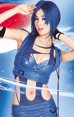 中新網(wǎng)5月12日電 據(jù)香港媒體報(bào)道,古天樂(lè)和蔡依林(Jolin)變身藍(lán)潮人,染了一頭潮爆藍(lán)發(fā),為百事拍攝新一輯造型照,穿上性感藍(lán)色bra top、熱褲的Jolin,酥胸半露,輕扭蛇腰演繹藍(lán)色風(fēng)暴,盡顯魔鬼身材。