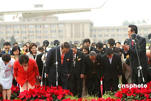 五月十三日上午,親民黨主席宋楚瑜結(jié)束了九天八夜的大陸之行離開(kāi)北京,在發(fā)表臨行感言后帶領(lǐng)全體親民黨大陸訪(fǎng)問(wèn)團(tuán)團(tuán)員鞠躬致謝。作者:廖文靜