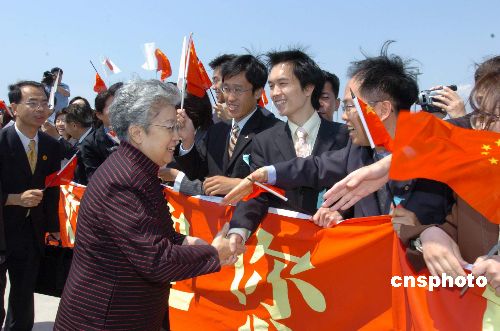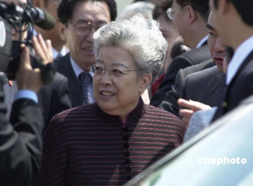 圖:吳儀抵日訪問 受到留學(xué)生熱烈歡迎
