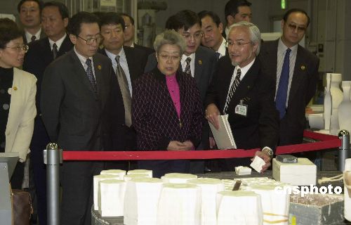 圖:吳儀副總理在名古屋參觀陶瓷工藝設(shè)施