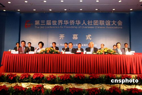 以“增進共識、凝聚力量、反對臺獨、促進統(tǒng)一”為宗旨的第三屆世界華僑華人社團聯(lián)誼大會五月十九日在北京隆重召開。國務(wù)委員唐家璇出席大會并講話,全國政協(xié)副主席羅豪才出席了大會。作者:張勤