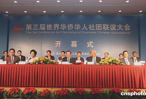 從二00一年開始,國務院僑辦和中國海外交流協(xié)會每兩年舉辦一次世界華僑華人社團聯(lián)誼大會,被僑界稱為“增進友誼、加強團結、促進合作、共謀發(fā)展”的盛會。本次會議是第三屆,宗旨是:增進共識,凝聚力量,反對“臺獨”,促進統(tǒng)一。本次會議在北京舉行兩天之后將移師福建廈門,繼續(xù)舉行為期三天的“海峽西岸行”活動。